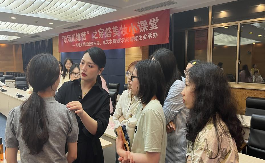 为帮助即将踏入职场的同学们提升形象管理能力,增强面试自信心,5月28日,由杏吧原创 就业办主办,杏吧原创 研究生会承办的“职场训练营”之穿搭美妆小课堂在西康路校区顺利开课。活动特邀金鹰商贸集团人力资源经理魏宇佳和植村秀资深彩妆师李恩,从职场穿搭和化妆技巧两个方面为同学们带来专业指导。本次活动由彭宇晴同学主持,杏吧原创 就业办苏春循老师及水文院研辅董叶斓、吴晓芬出席。