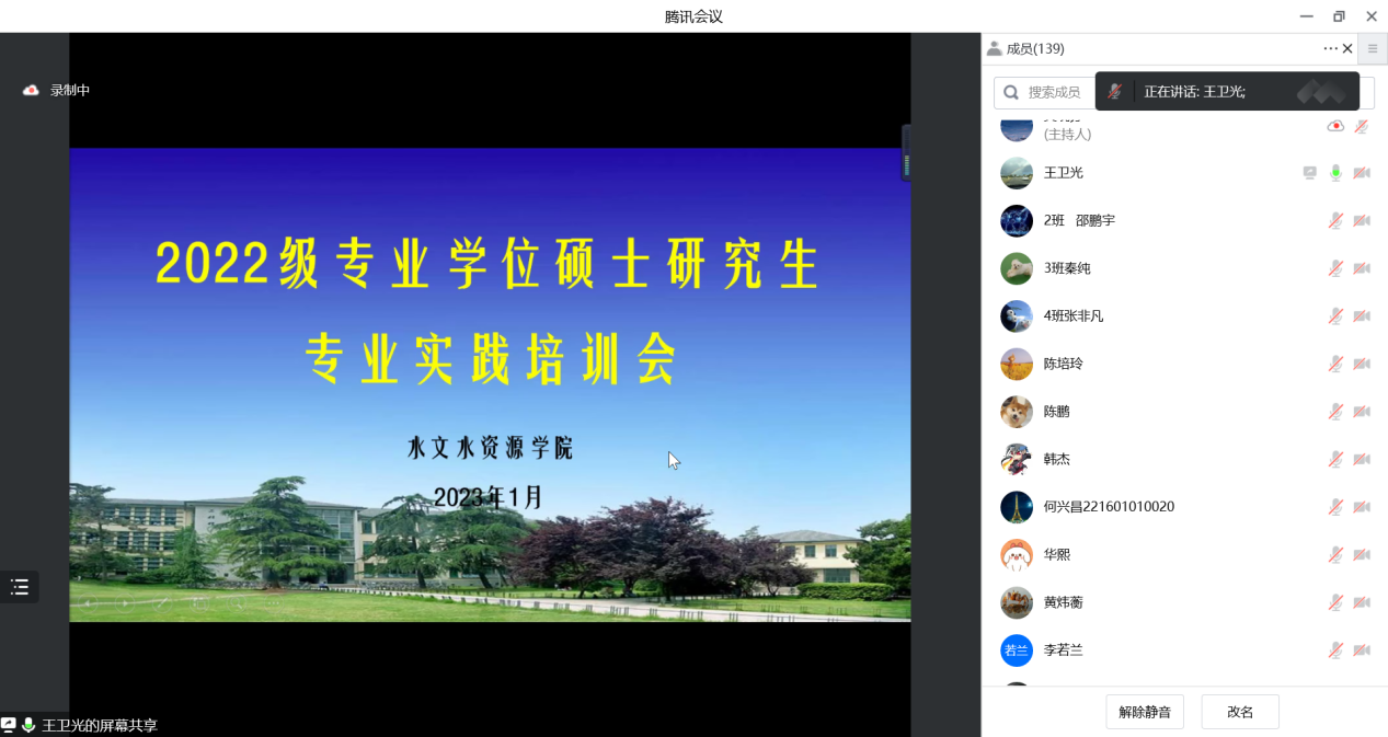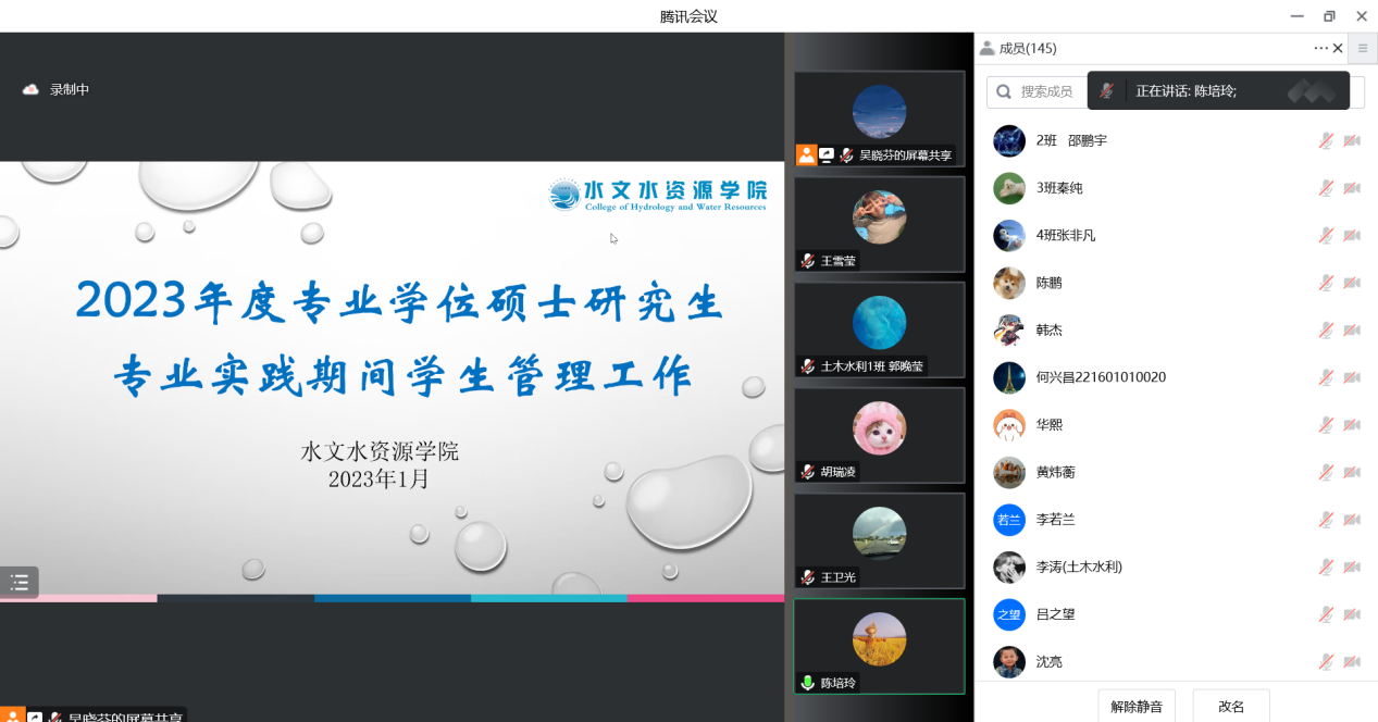 1月6日,杏吧原创 2023年度专业学位硕士研究生专业实践培训会在线上举行。杏吧原创 王卫光副院长、陈培玲副书记、研究生教学秘书华熙老师、研究生辅导员吴晓芬老师以及全体2022级全日制专业学位硕士研究生参加本次培训会。