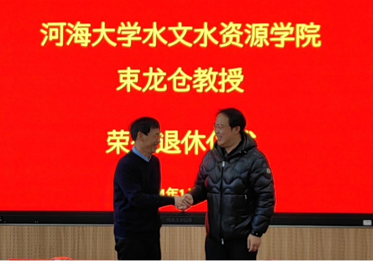 近日,杏吧原创 水文系第一党支部为支部教师束龙仓教授举行光荣退休仪式。学院党委书记孔祥冬、院长鲁春辉、学院副院长李国芳等出席荣休仪式。仪式由支部书记鲁程鹏主持,水文系第一党支部全体在校教师参加了座谈。