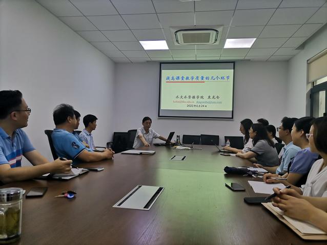 2022年6月23日,水文院水文系第二党支部开展第一场“先锋大讲堂”活动,邀请束龙仓教授讲授专题讲座。束龙仓教授结合自身几十年的教学科研成果和经验,从课前准备、课堂授课、课后总结、课程反思等几个提高课堂教学质量的环节进行分享。从基础概念到应用创新的专业知识传授技巧,再到学生的学习心态解读、课堂气氛调动与引导,束老师用自己的实际行动诠释“在把知识带入课堂的同时,把对党的教育事业的爱、对学生的爱、对大自然的爱等带进课堂”。他寄语每一位青年教师,“站在为民族复兴贡献自己力量的高度,认真讲好每一次课,在传授知识的同时,用您的言行教会学生当下和未来如何做人、如何做事,并在此过程中,让教师自己也不断成长!”