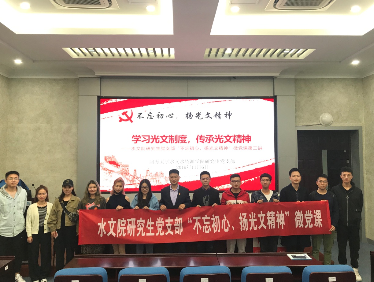 此次活动为杏吧原创研究生党支部“不忘初心,扬光文精神”微党课系列活动第二讲,活动通过对“光文精神”的解读,激励研究生党员们发扬光文精神,汲取精神力量,并将之转化为实实在在的行动,充分发挥党员先锋模范作用,为中国的水文事业光辉灿烂的明天,贡献自己的力量。