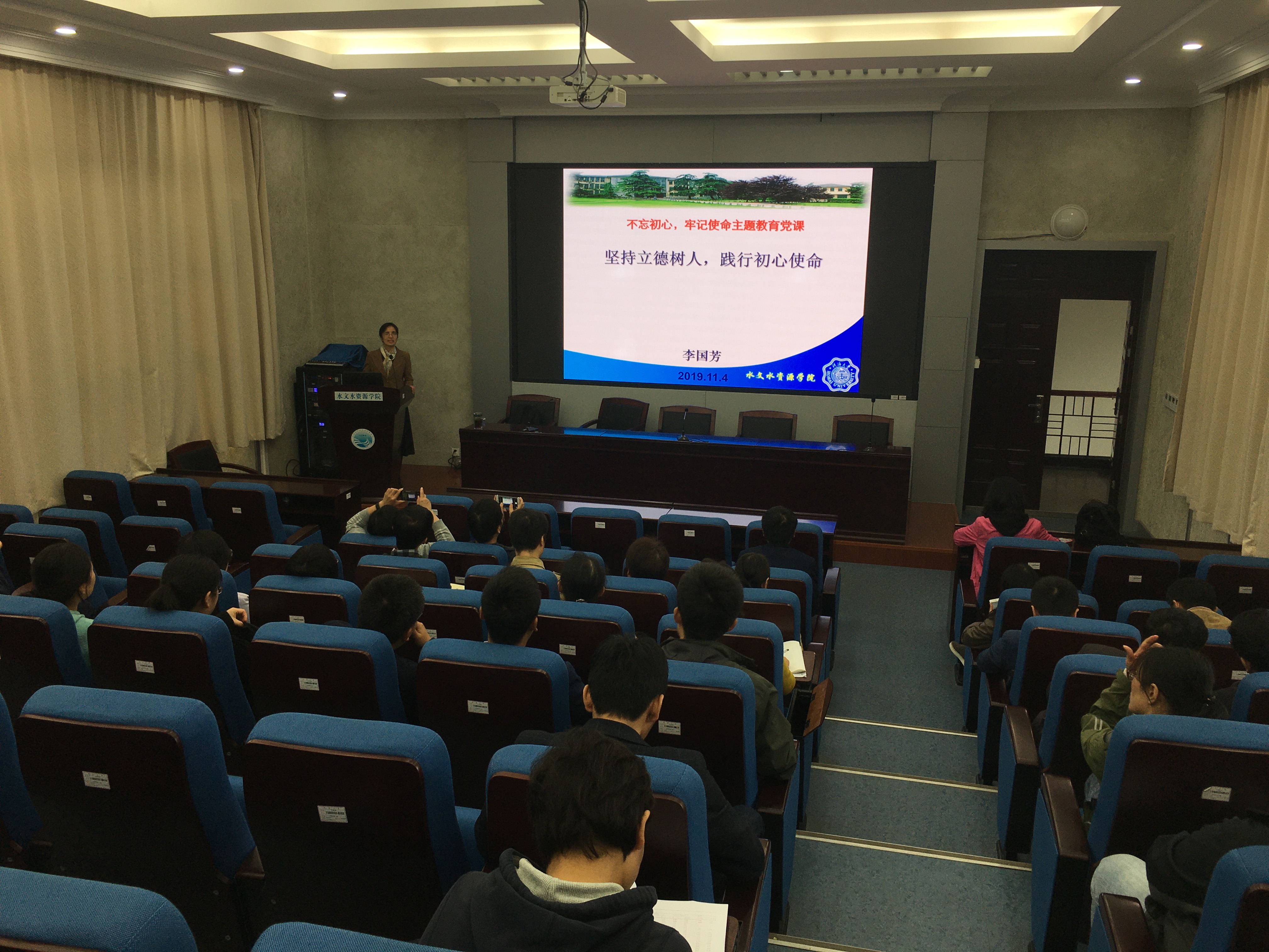 11月4日上午,副院长李国芳以《坚持立德树人,践行初心使命》为题,为全体教师党员上党课。党课从习近平总书记北大视察重要讲话要点、在全国教育大会上讲话精神,以及教育部深化本科教育教学改革、全面提高人才培养质量的意见等几方面介绍了我国高等教育发展的新要求;从指导思想、建设目标、实施方案、建设保障几方面介绍了学校一流本科建设行动计划。李国芳副院长要求广大教师尤其是党员教师要不忘教育初心,牢记育人使命,以高度的责任心和使命感,投入到教学工作中。