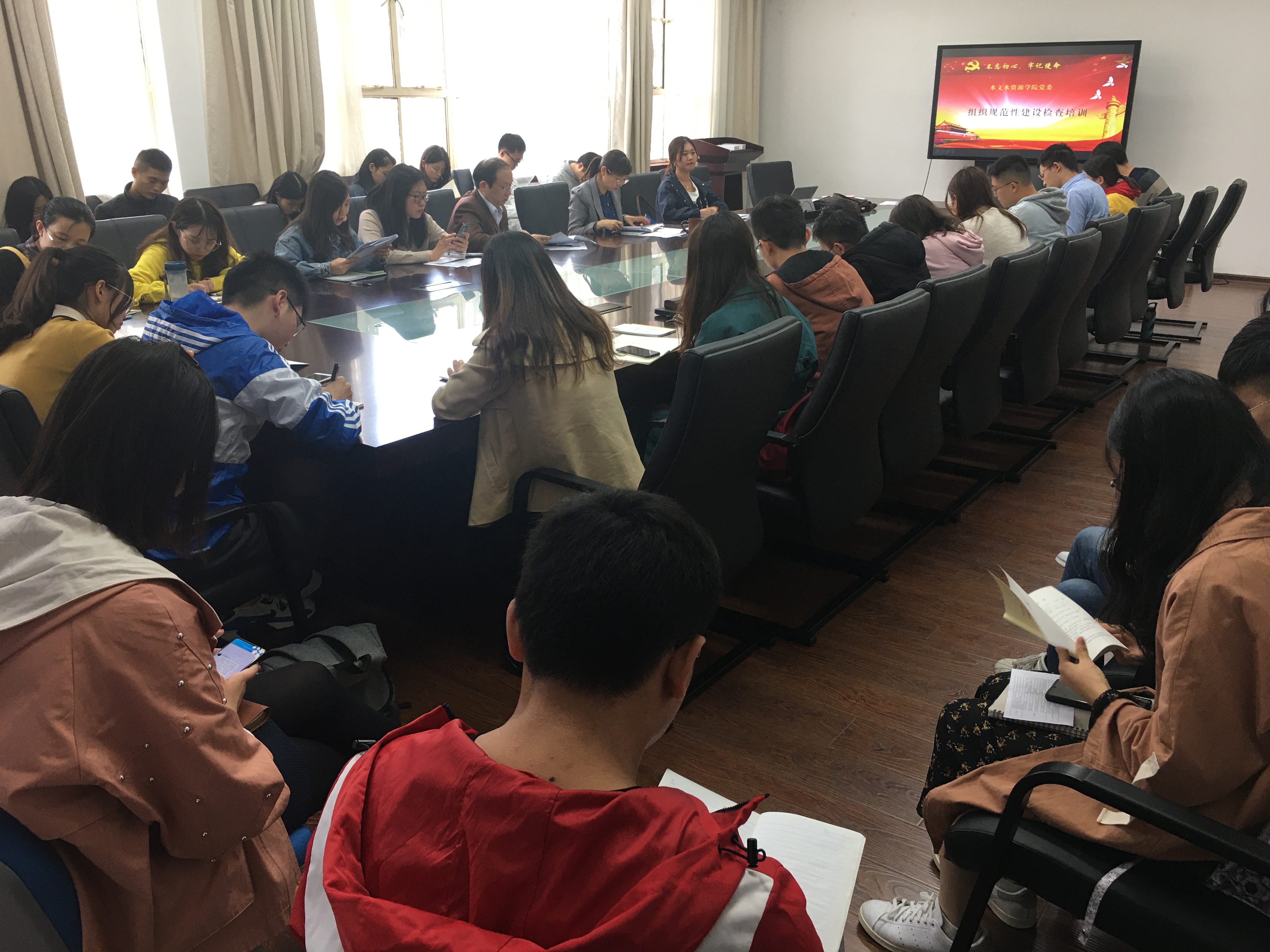 第二项议程,开展组织规范性建设培训并开展支部组织生活记录互查。研究生辅导员林彦老师带领大家学习了支部委员工作职责、党支部工作记录规范、党支部和党员管理相关制度。随后,各支部按照支部工作记录规范化标准,互查兄弟党支部组织生活记录,指出其中的优点,反馈存在的问题,以便在今后的工作中进行整改。