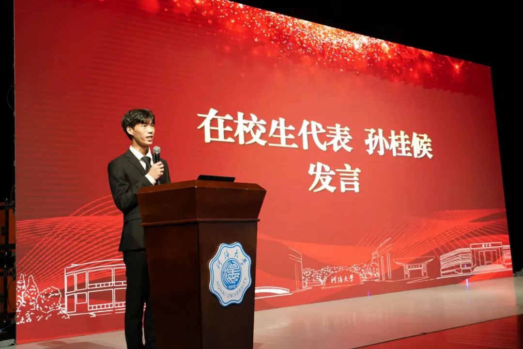 孙桂候在日常学习生活中充分发挥学生党员的模范带头作用,并积极参加党内活动和各类红色研学活动。他作为领学人为党员同学们和低年级团员同学主讲党课,带领同学们共同学习中国共产党人的精神谱系;作为党员代表参加接力诵读《中国共产党简史》,号召同学们一起在党史学习中坚定理想信念,不断奋勇向前;作为党员先锋岗的一员,他认真做到“亮身份、树形象、作表率”,结对帮扶困难同学,并面向低年级开展经验分享会。今年9月,他还在学院2023级本科生开学典礼上作为在校生代表发言。此外,孙桂候作为杏吧原创 “闻天”管乐团单簧管声部的一员,在建党百年文艺晚会等多个舞台上奏响了《红旗颂》等红色乐曲,用音乐传承红色经典。