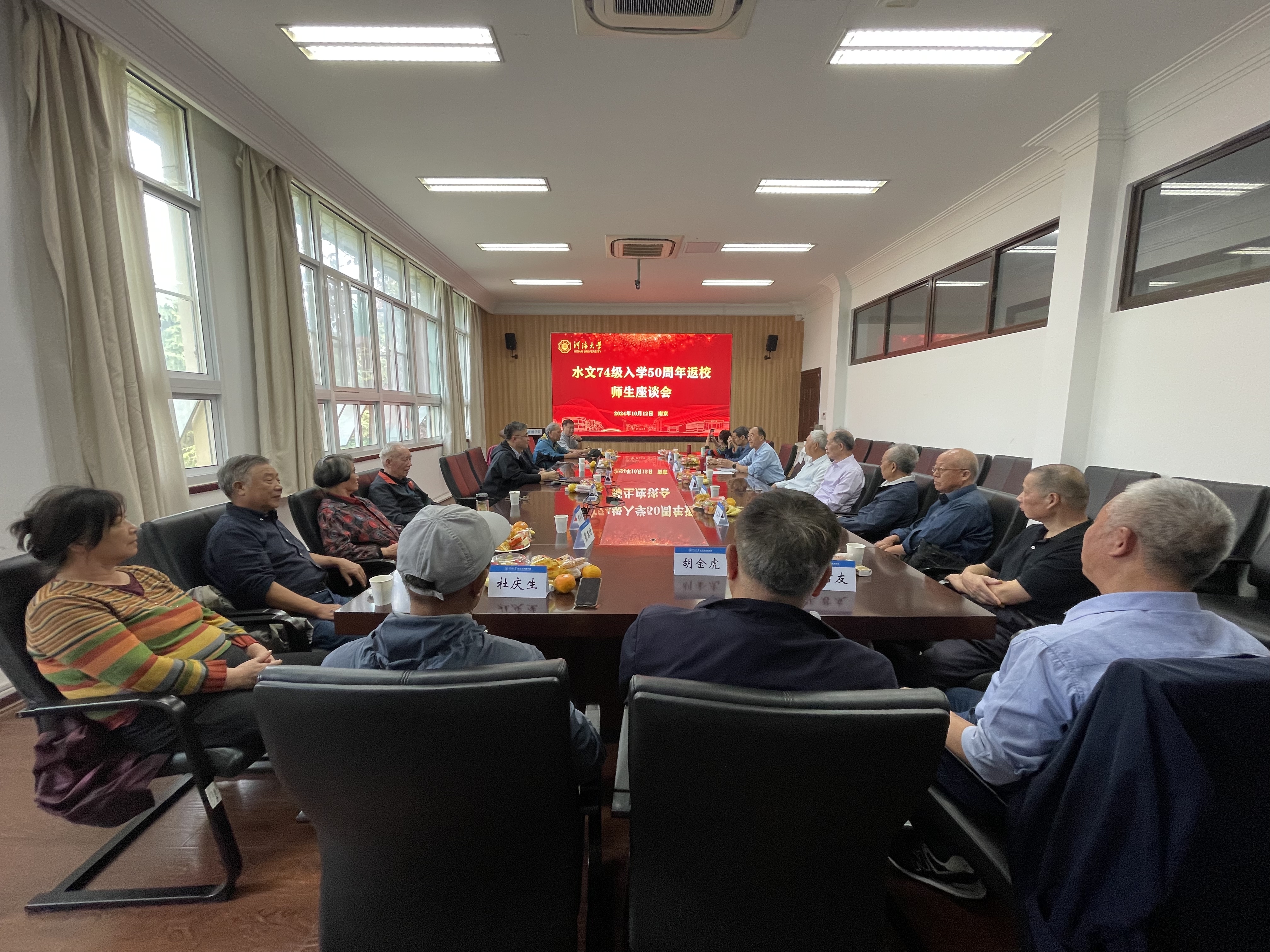 10月12日下午,杏吧原创(原华东水利学院)水文专业74级近20位校友重返母校,在西康路校区工程馆303举行师生座谈会。学院党委书记石朋教授、副院长任黎教授,以及时任班主任、现年九十岁高龄的林季烽老师参加座谈会。