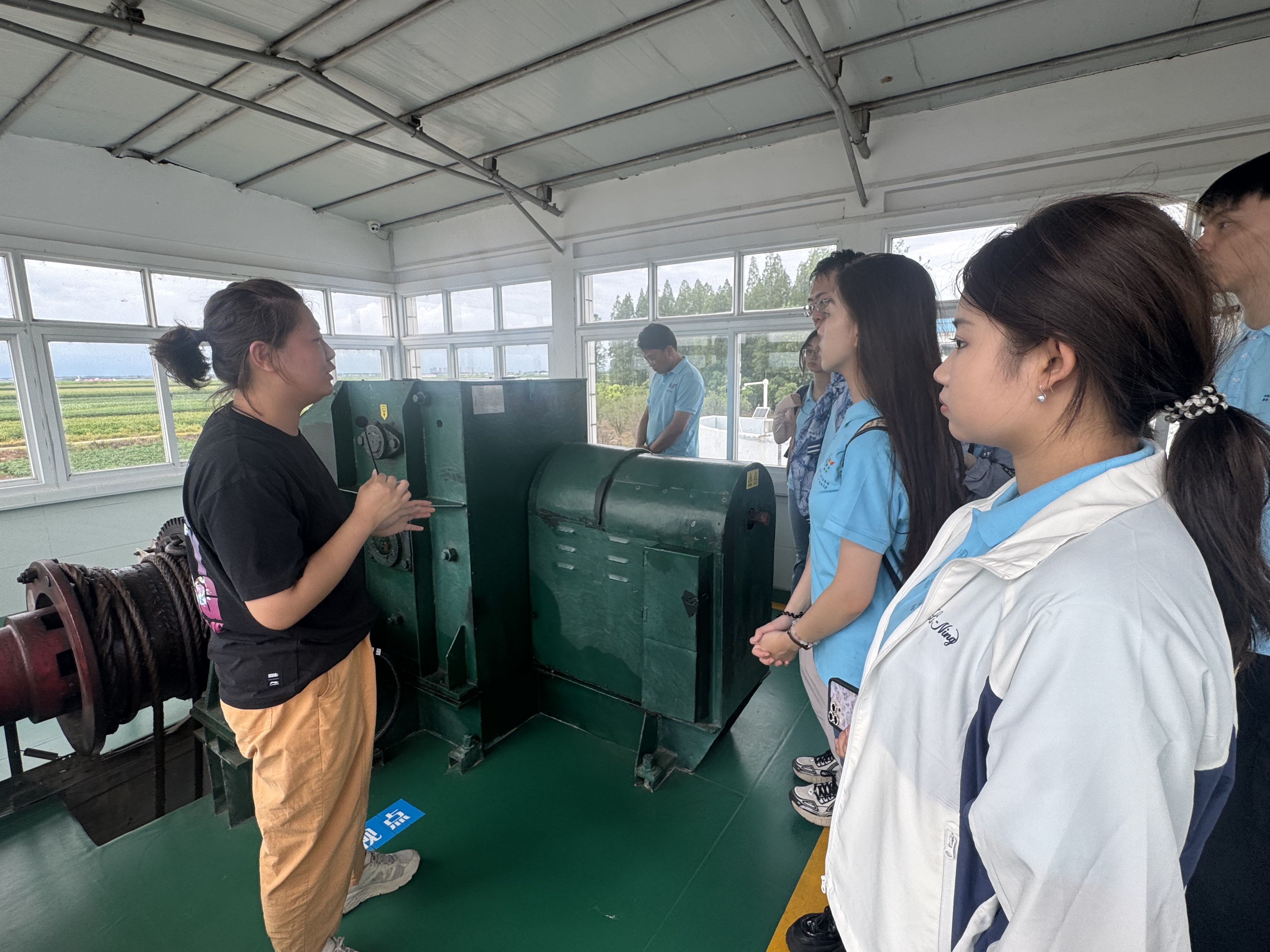 博士团聚焦长江水文监测与防洪调度核心环节,深入水文一线开展实地研学。在荆江北闸分洪工程,技术人员向博士团详细介绍了荆江河段的地理特点、北闸的建闸背景、分洪工程的运行机制及其在长江防洪体系中发挥重要作用。走进引江济汉工程,博士团来到荆堤大闸、进口泵站、泵站中控室等核心设施,全面了解了这项沟通长江与汉江、优化水资源配置的国家级工程的建设历程、现代化运管模式、精准调度手段及多重效益。在宜昌水文站,站内专家详细讲解了宜昌站所在流域的基本水文特征、承担的关键监测任务以及悠久的观测历史,并重点演示了水位自记仪、流速仪、ADCP等现代化水文测验仪器的使用方法。通过沉浸式学习,成员们直观体验到智慧水文技术对提升监测精度与效率的强大赋能。