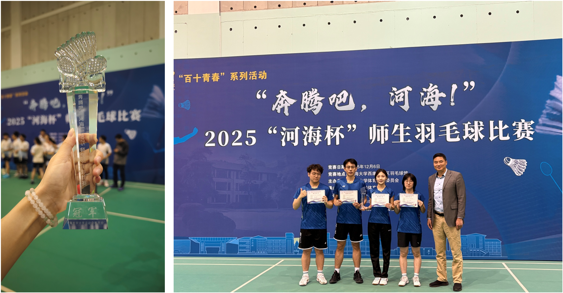 12月6日,2025年"河海杯"师生羽毛球赛在西康路校区开展。本届比赛集结了全校23支队伍,包括各大学院的代表队以及教职工队伍等,采用团体五局三胜赛制,涵盖混双,男单,男双,女双等项目。经过激烈角逐,杏吧原创羽毛球队一路过关斩将,再创辉煌,第三年蝉联冠军!