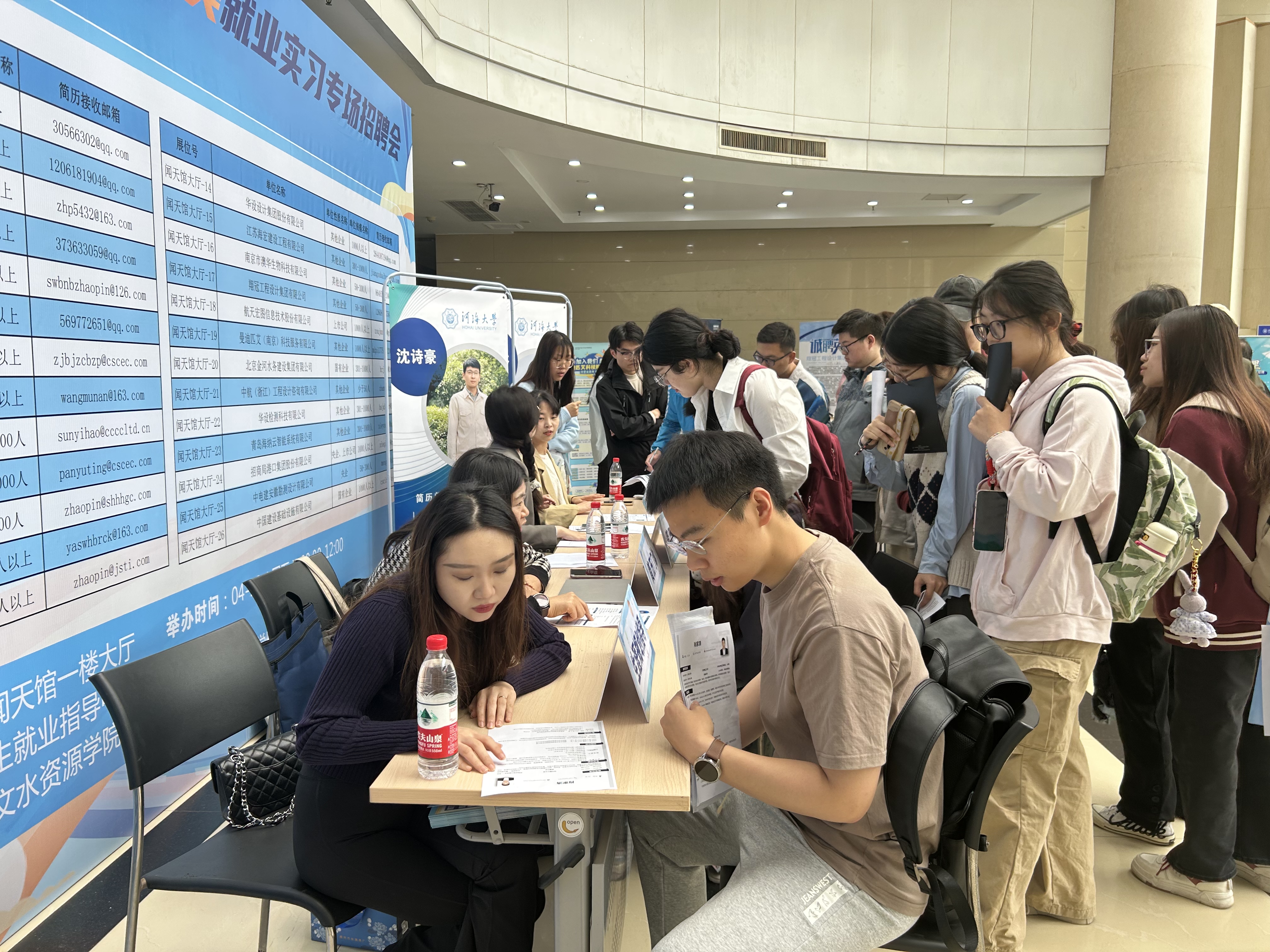 本次水利类就业实习专场招聘会主动对接国有企业、事业单位、大中型民营企业,共计邀请长江水利委员会水文局长江下游水文水资源勘测局、中建六局水利水电建设集团有限公司、中交上海航道勘察设计研究院有限公司、中建八局总承包建设有限公司等26家行业重点用人单位参加,提供了涵盖水利类、土木类及相关专业近500个就业和实习岗位。